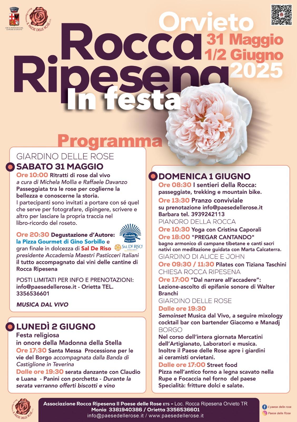 Domenica 1 giugno l’appuntamento è invece alle 8.30 con “I sentieri della Rocca”, passeggiate, trekking e mountain bike per scoprire i paesaggi che portano al Paese delle Rose cui seguirà alle 13.30 il pranzo conviviale su prenotazione (info@paesedellerose.it – tel. 3939242113 Barbara).